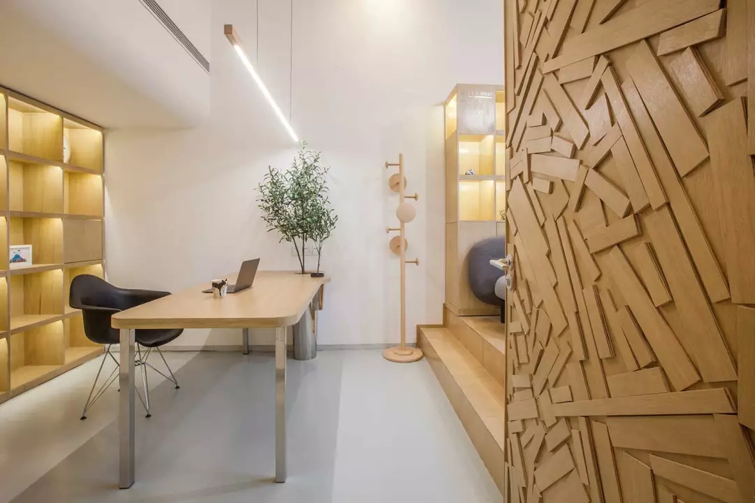 該項(xiàng)目位于上海市閔行區(qū)七寶萬(wàn)科國(guó)際;我們希望工作室足夠的輕松、溫性、創(chuàng)意,于是通過(guò)顯性與隱性的符號(hào)對(duì)我們的目標(biāo)進(jìn)行構(gòu)建;空間用了大量溫暖的木色,并組成木質(zhì)的空間體塊,這些體塊以整個(gè)白色空間為背景,進(jìn)行功能與空間節(jié)奏上的構(gòu)筑: