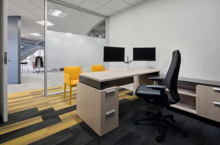 這里每一寸都為員工提供了一個(gè)支持他們成功的環(huán)境,依靠技術(shù)手段,打造鼓勵(lì)員工連接和溝通的氛圍。墻面白板、視頻會(huì)議室、各種空間和家具允許個(gè)人和團(tuán)隊(duì)在辦公室內(nèi)的完美位置進(jìn)行協(xié)作,當(dāng)然,如果想來(lái)一場(chǎng)即興的乒乓球比賽也未嘗不可。