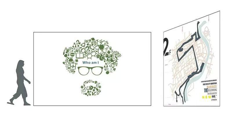 以上是本期課程第一個重點——環(huán)境圖形的內容界定。它包括室內的導視標識、一系列公司的文化展示,這兩塊內容基本構成了室內環(huán)境圖形設計的設計內容。