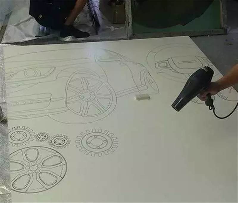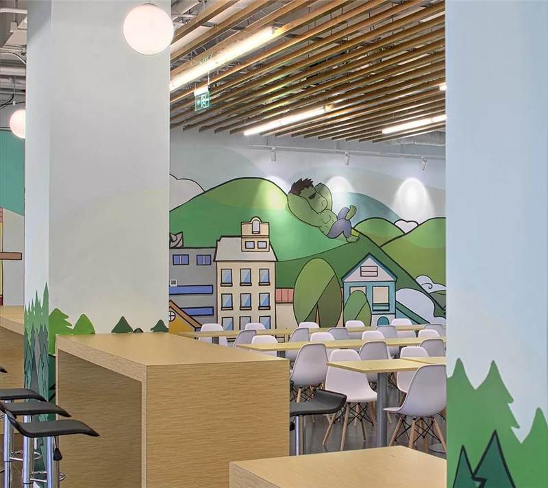 這幅畫是最初設計的圖案,圖形繪制的大粉筆畫,它的好處是可以定期的更換,就像黑板報一樣來制定不同的主題,就員工的活動,員工的留言簽字都可以在這體現(xiàn),如同活的展示墻。