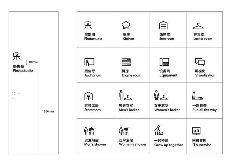 辦公室裝修內的環(huán)境圖形設計不同于常規(guī)的室內軟裝設計,它相比軟裝設計更偏向平面視覺,辦公室裝修內的環(huán)境圖形設計內容主要可以分為兩大類:第一類是包含了辦公室設計內的導視標識系統(tǒng),例如門牌部門標識疏散指示消防標識設備間標識,甚至門、柜體的推拉指示等。