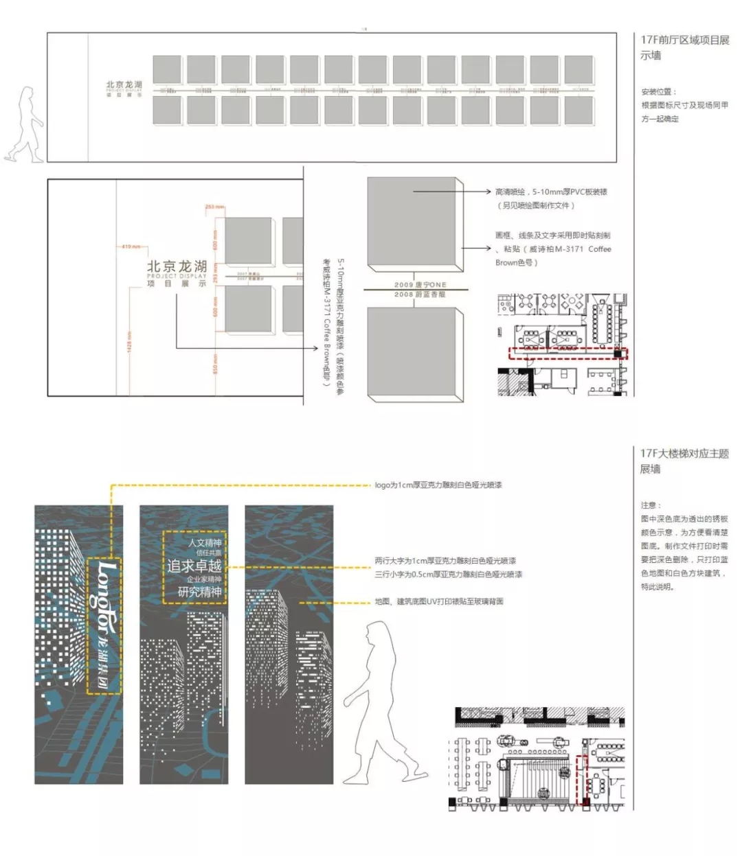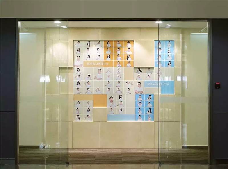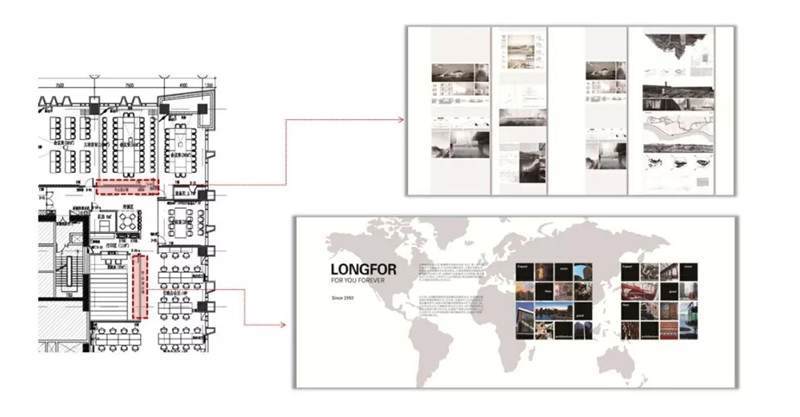 這一部分內容跟展示設計相似,例如上圖,龍湖集團辦公室內的一些項目展示團隊的建設,利用了大面積墻面上的空間進行了設計和制作。