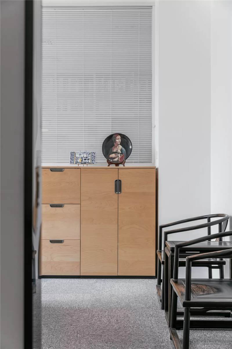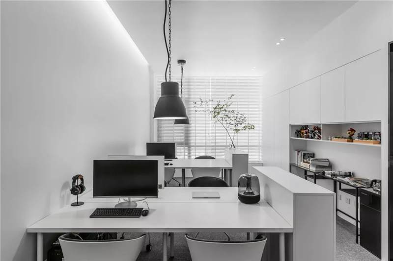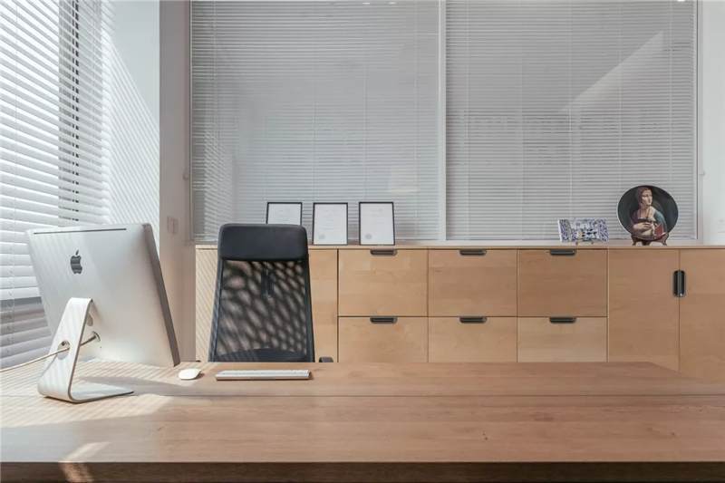 自由無(wú)拘的溝通對(duì)于團(tuán)隊(duì)的創(chuàng)新至關(guān)重要。開放的辦公區(qū)是有效獲取信息和激發(fā)靈感的地方。百葉窗折射的光影,充足的自然光營(yíng)造高效的工作環(huán)境。空間雖然有限,但發(fā)揮最大的性能,開辟出一整面的軟裝材料搭配區(qū)。