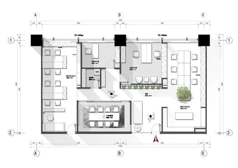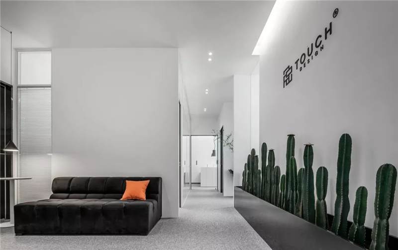 刪繁就簡(jiǎn),以最經(jīng)典的白色為主題搭配色調(diào),沒(méi)有繁瑣的設(shè)計(jì)和過(guò)多的裝飾,減去辦公中的壓抑感。通過(guò)將自然純凈的白色與沉靜黑色相結(jié)合,將品牌形象簡(jiǎn)潔地呈現(xiàn)表達(dá),同時(shí)為左右空間的過(guò)渡創(chuàng)建和諧觀感。純白的墻面,接近心靈的澄凈;仙人掌是視覺的焦點(diǎn),恣意生長(zhǎng)、堅(jiān)韌、夯實(shí)根基,也正寓意著公司的設(shè)計(jì)理念:有所依、有所仗、有所長(zhǎng)。