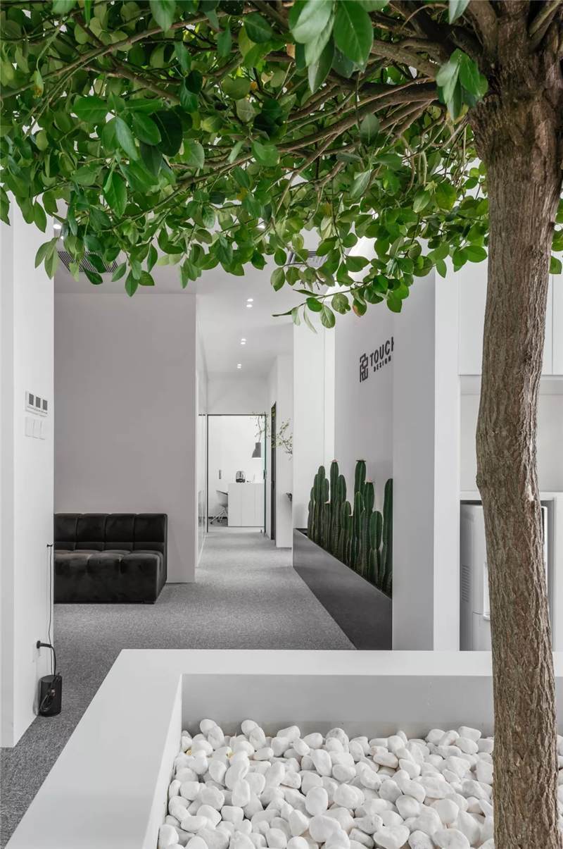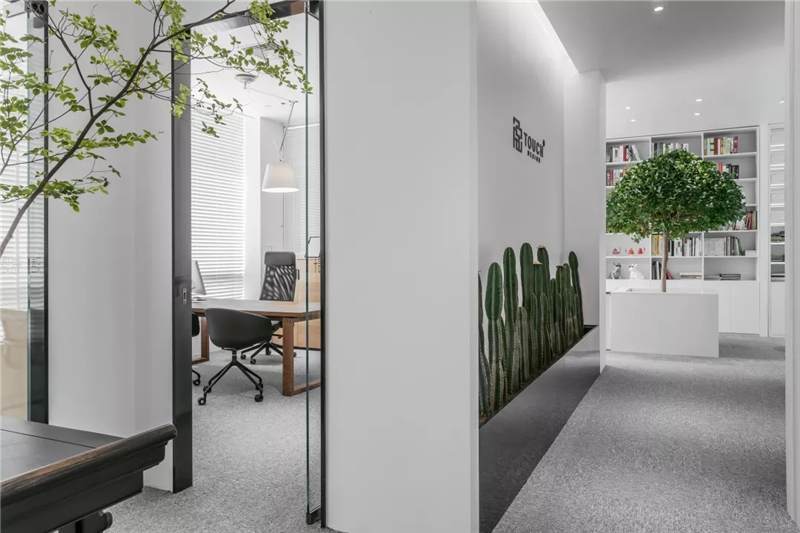 觸覺設(shè)計(jì)巧妙擷取文化于當(dāng)代都會(huì)空間,展現(xiàn)出雅致韻味的同時(shí)留下了更多觸碰的余地。綠植來(lái)點(diǎn)亮辦公場(chǎng)所的鮮活生命力,清逸的色彩是思想游龍的軌跡,在留白的空間中伸出觸角,觸覺所及之處,思維綻放遐想。