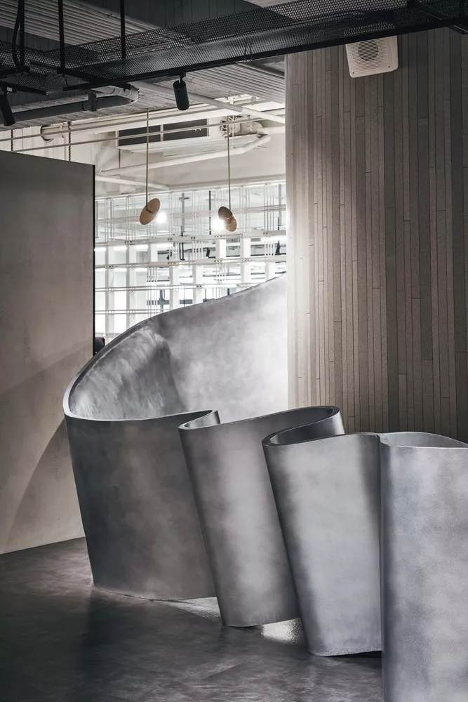 創(chuàng)意是無限,沒有邊界的。是一條線、亦是線聚集轉(zhuǎn)化而成的曲面。直線,是思考的軌跡。曲面,是每個創(chuàng)作的轉(zhuǎn)折,線條的動靜之間,串聯(lián)了空間,刻意保留基地原貌的原質(zhì)肌理,植入了新的設(shè)計元素,呈現(xiàn)粗曠和細(xì)致的沖突美,來表達品牌精神:前衛(wèi)、年輕、精致、優(yōu)雅。充滿雕塑感的柜臺,佇立于公共空間中充滿風(fēng)采,勾勒新穎且醒目的企業(yè)形象。