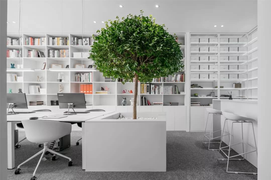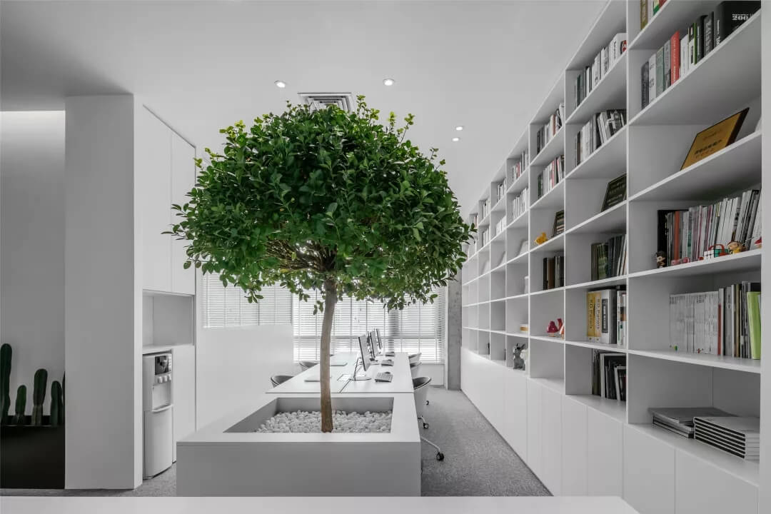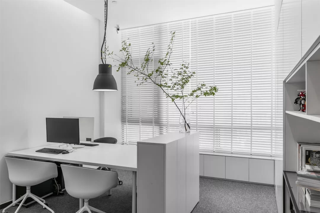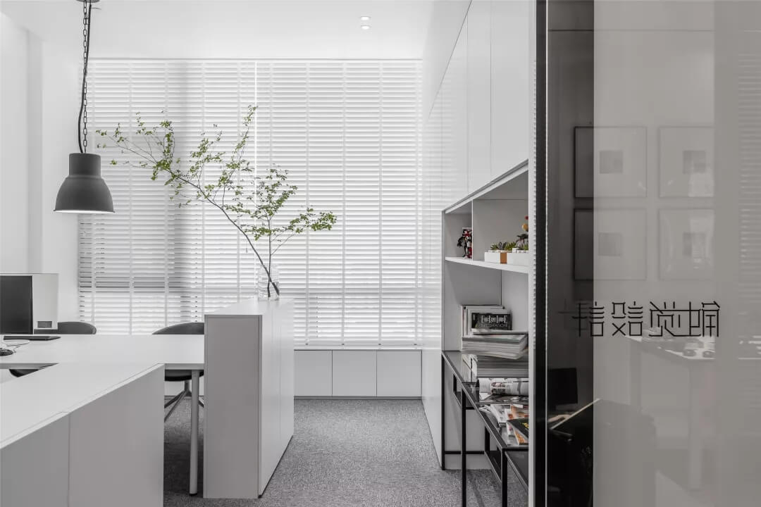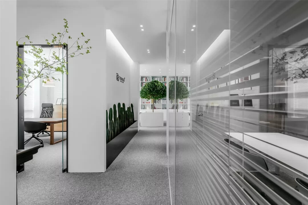刪繁就簡,以最經(jīng)典的白色為主題搭配色調(diào),沒有繁瑣的辦公室設(shè)計(jì)和過多的裝飾,減去辦公中的壓抑感。通過將自然純凈的白色與沉靜黑色相結(jié)合,將品牌形象簡潔地呈現(xiàn)表達(dá),同時(shí)為左右空間的過渡創(chuàng)建和諧觀感。純白的墻面,接近心靈的澄凈;仙人掌是視覺的焦點(diǎn),恣意生長、堅(jiān)韌、夯實(shí)根基,也正寓意著公司的設(shè)計(jì)理念:有所依、有所仗、有所長。
