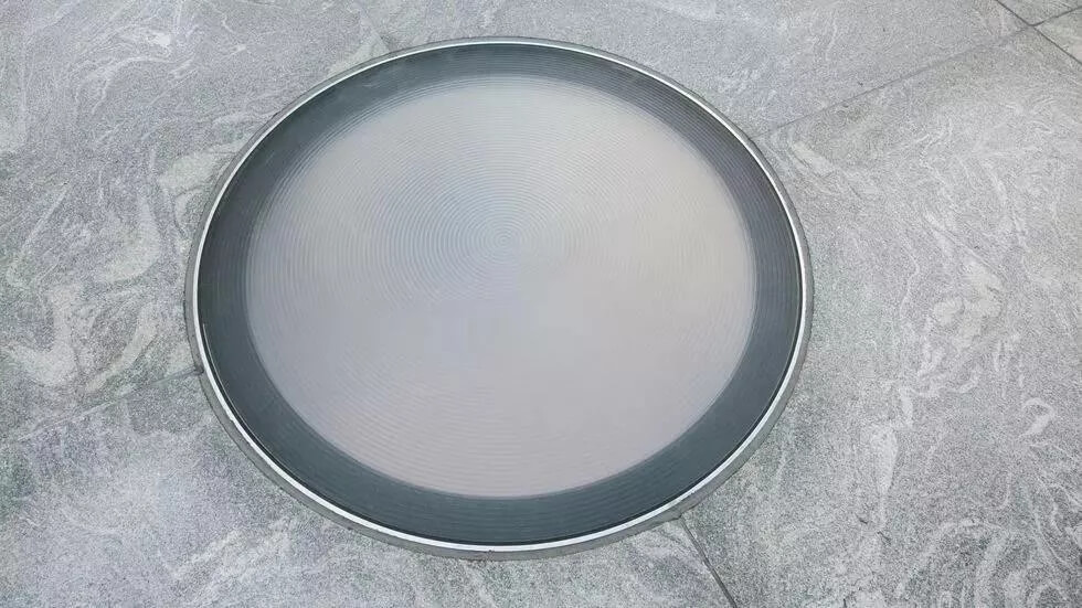 廣場上除了18個(gè)凸起天窗,還有 62 個(gè)與地面齊平的圓形磨砂天窗。
