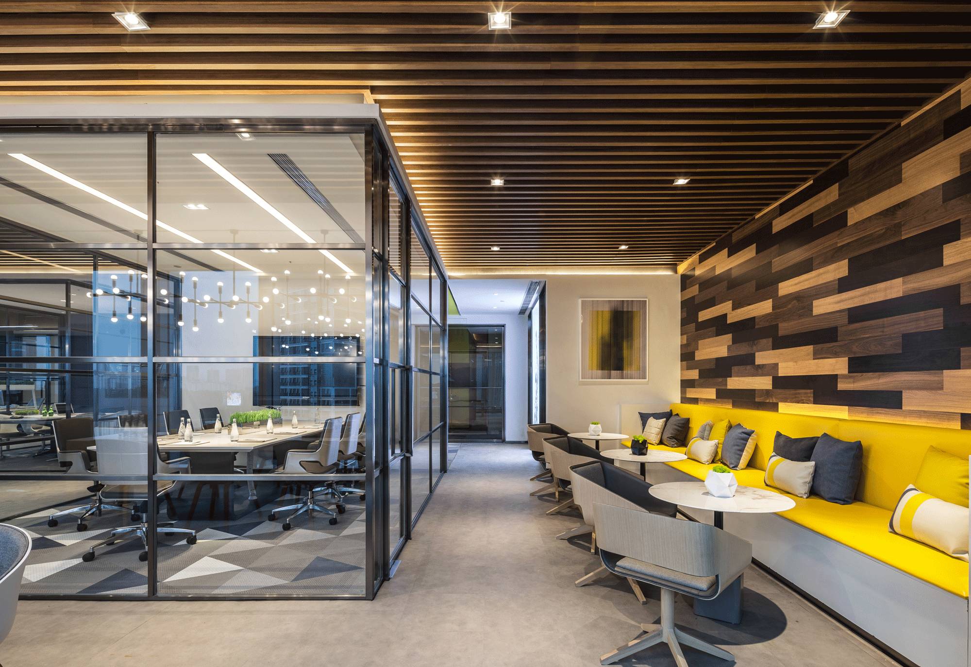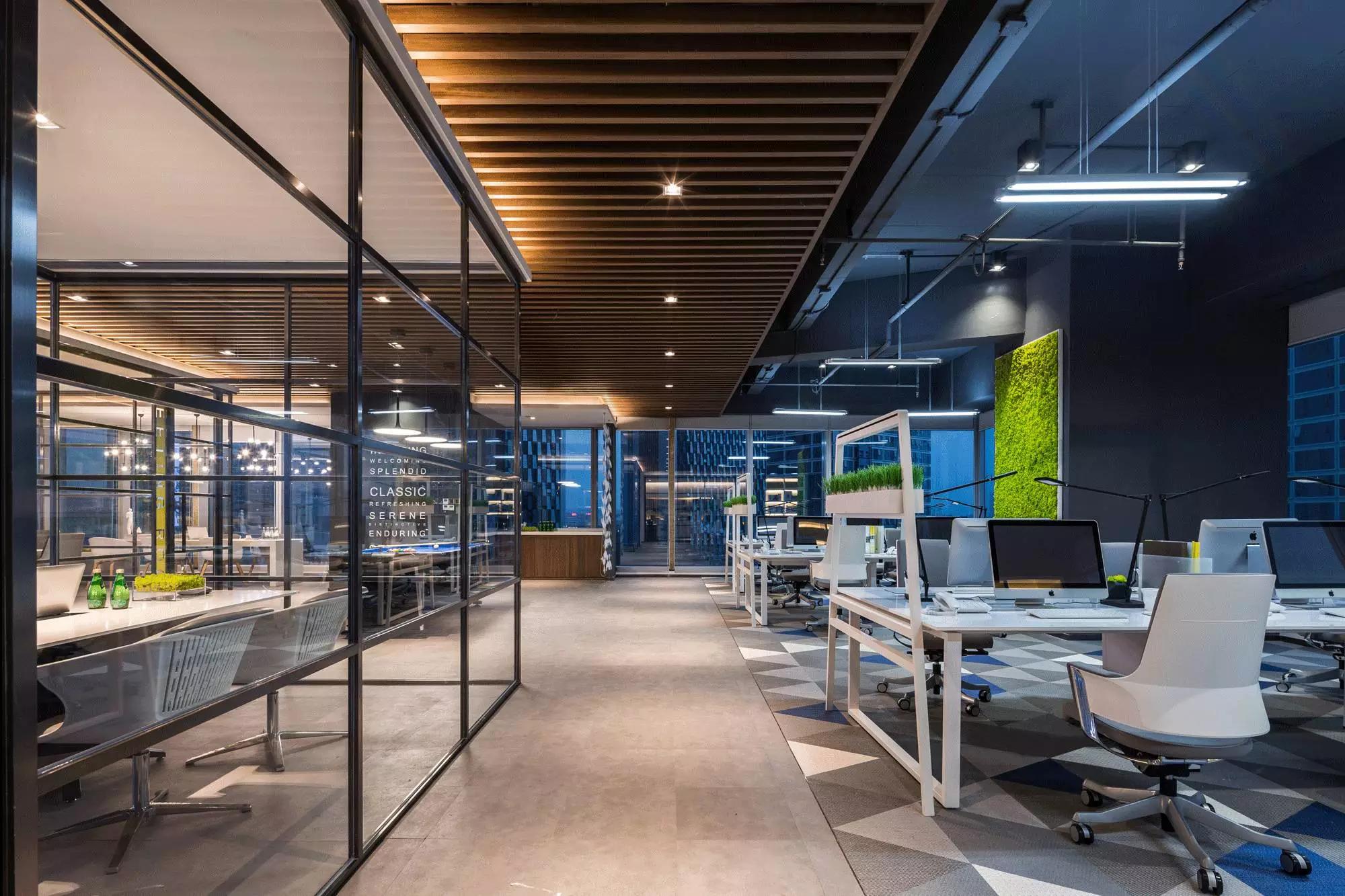 采納了“自由”空間慣用的開放式設(shè)計(jì),拋棄了沉悶的障礙物、墻壁,僅預(yù)留必要的墻體,并用少數(shù)玻璃分割不同的空間,多人會(huì)議室、小組會(huì)議室的靈活設(shè)計(jì),動(dòng)線連貫流暢,充分滿足了現(xiàn)代科技空間“樂活、高效”的辦公需求。