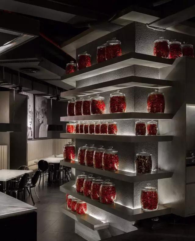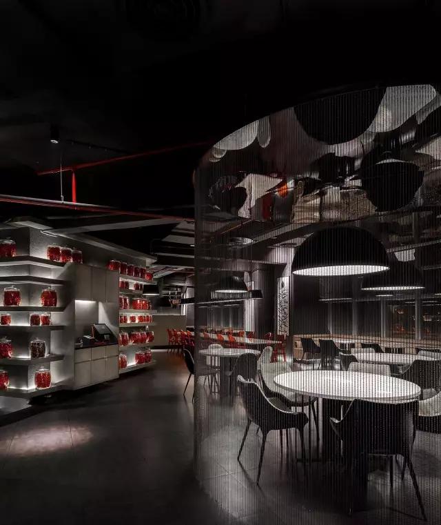 小辣椒湘菜餐廳空間,是以空間的多樣性為主軸。餐廳創(chuàng)始人提出以辣椒裝飾空間,設(shè)計師通過對“小辣椒”這個設(shè)計字符的不斷重復,給空間增加藝術(shù)畫及創(chuàng)意燈飾,成為空間裝飾的細節(jié)。整個空間的體量不算特別大,但有下沉式空間設(shè)計。用于分割空間的雨滴式珠簾,似動而靜的雨滴隔斷簾營造親密又放松的用餐空間。