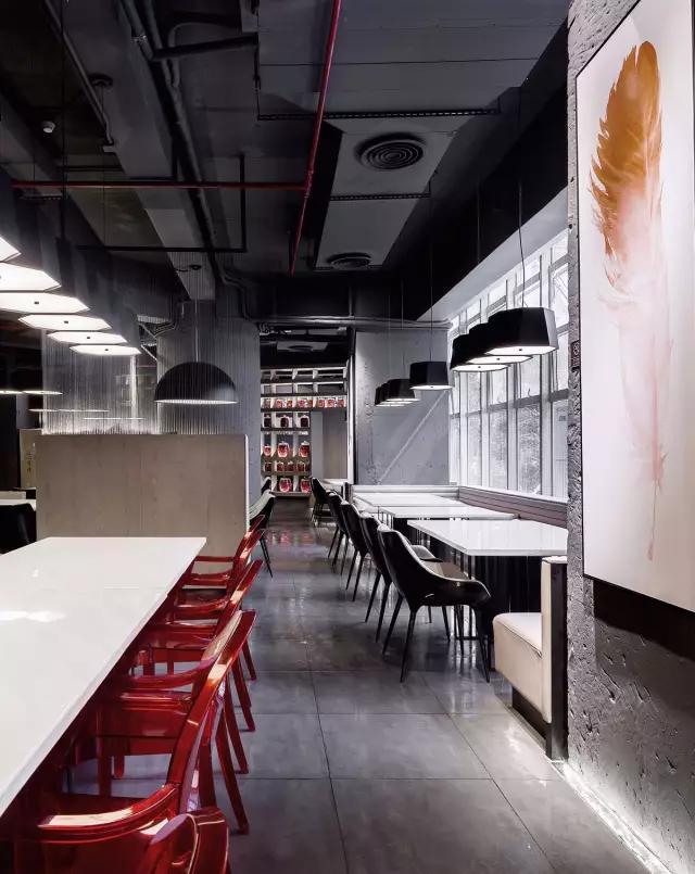 設(shè)計師的初心是以最少的項目預(yù)算,發(fā)揮此案項目最極致的藝術(shù)空間設(shè)計體驗。對成本的嚴格把控,給自己在設(shè)計與施工過程中施加壓力與難度,對材料及工藝的優(yōu)化成為了主案設(shè)計師不斷反復思考的問題。設(shè)計師決定保留空間原始的承重墻、柱子,解決傳統(tǒng)設(shè)計里的平面功能布局,除此之外對空間分布,區(qū)域劃分增加更多體驗感和現(xiàn)代藝術(shù)文化感受,讓來訪的食客,一步一個驚喜,動線流暢。設(shè)計除了營造合理用餐和聚會的優(yōu)雅環(huán)境,還通過精心的平面布置、空間規(guī)劃以及摩登藝術(shù)軟裝陳設(shè),使空間充滿時尚的藝術(shù)氛圍。當然主筆設(shè)計師的重點還是不斷考慮食客的用餐體驗感及把產(chǎn)值比和支出比算準、要有視覺效果和很舒服的空間感受,能源消耗要最低化,后勤動線和客人動線要明了。