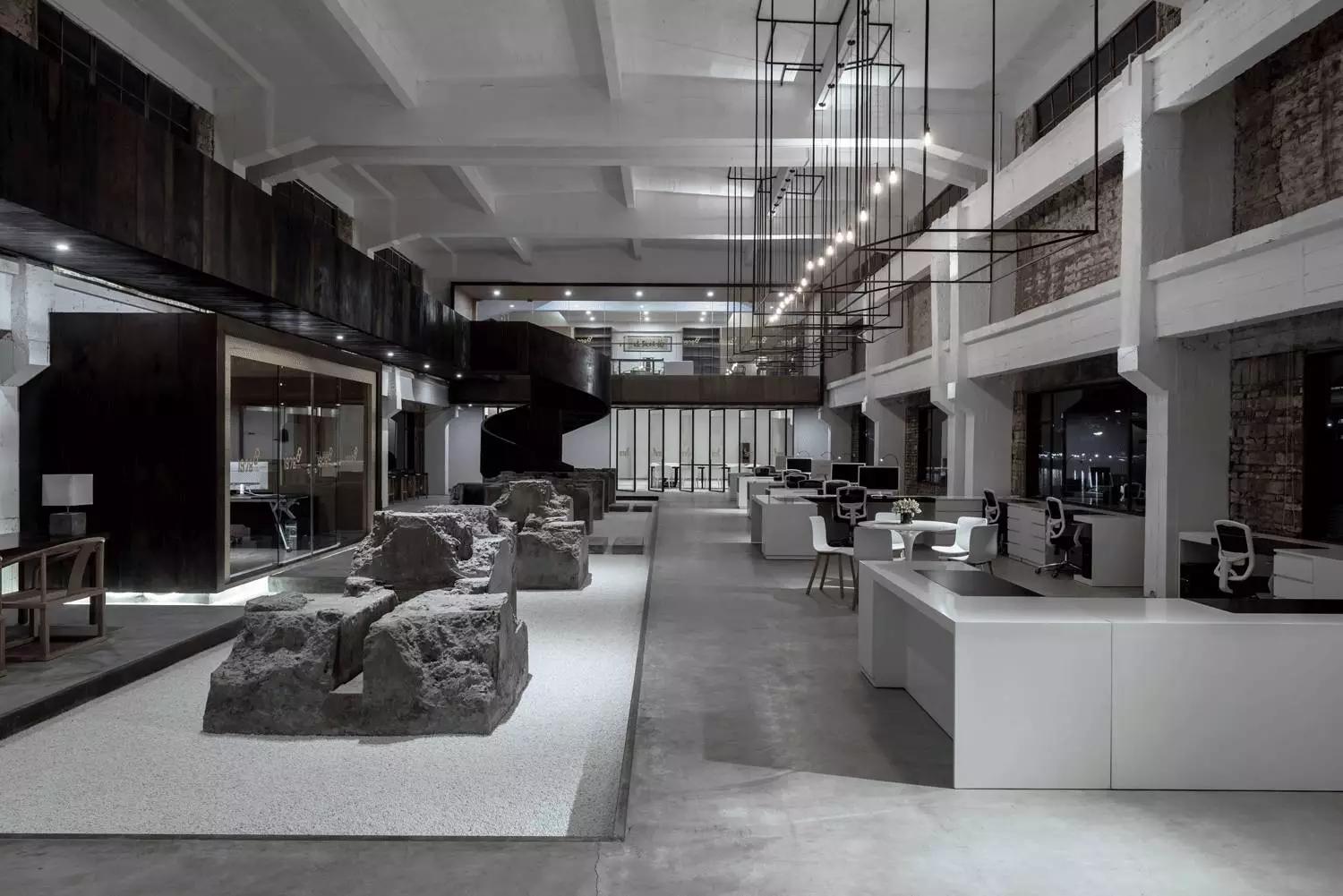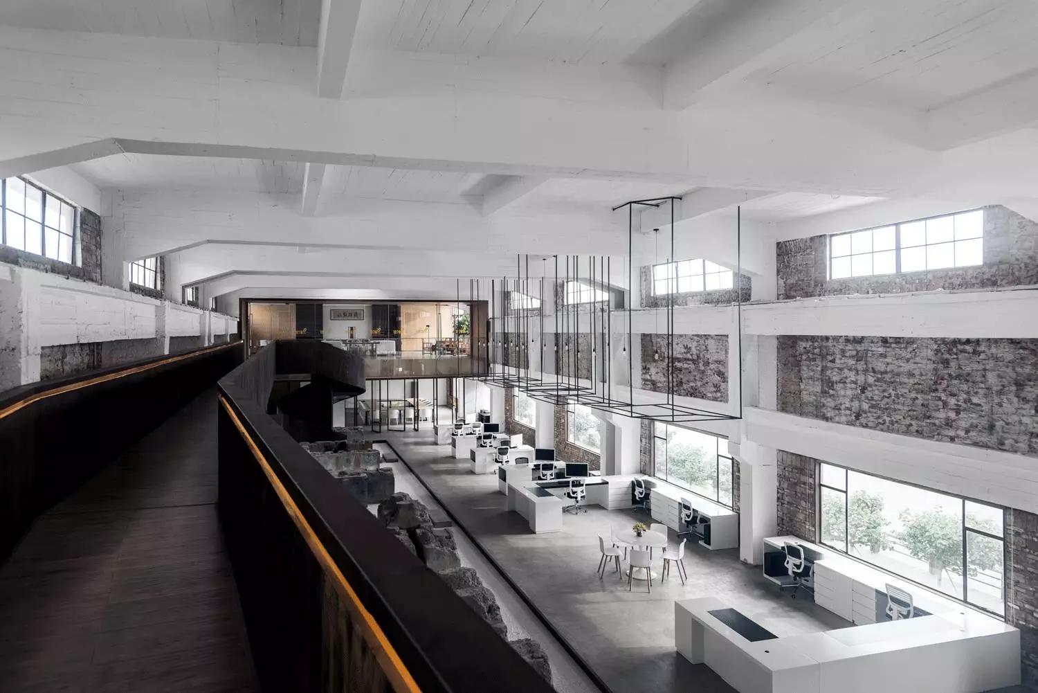 群組辦公空間保留的舊石墩是場所精神的集中體現(xiàn),正是它,喚起了空間裡地方風(fēng)貌的意象。