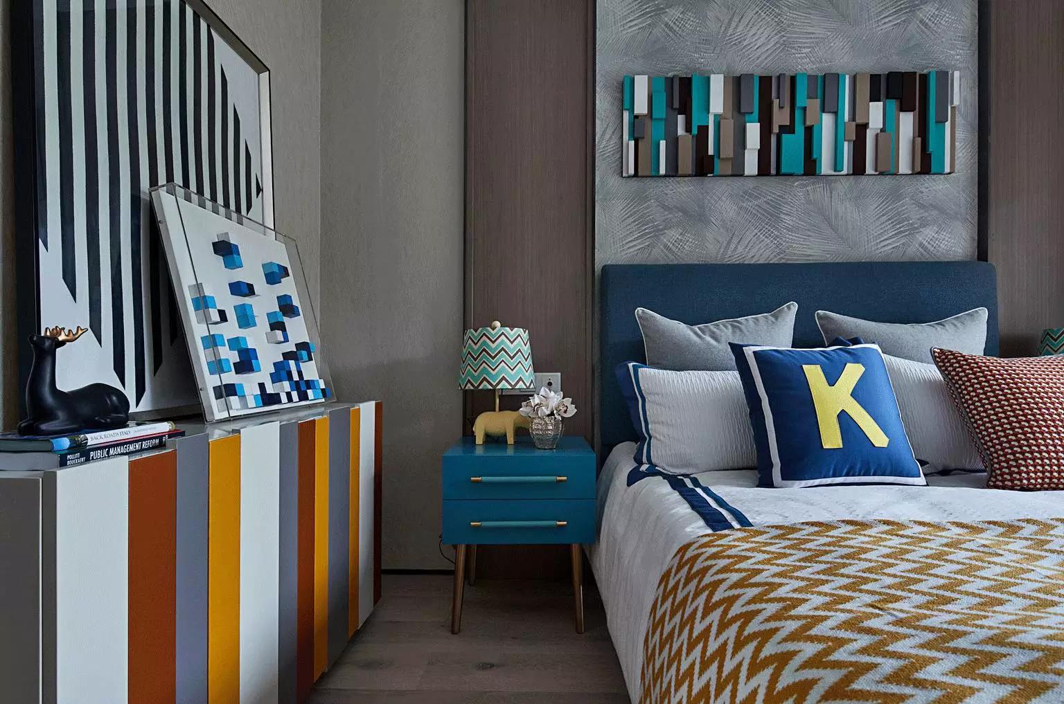 都市雅痞們的下一代,也必將是特立獨行,善于接受新事物的。所以在兒童房的設計中,加入了時下流行的樂高元素,不同色彩的積木條,不僅增添空間趣味性,也拉近了父母與孩子的距離。