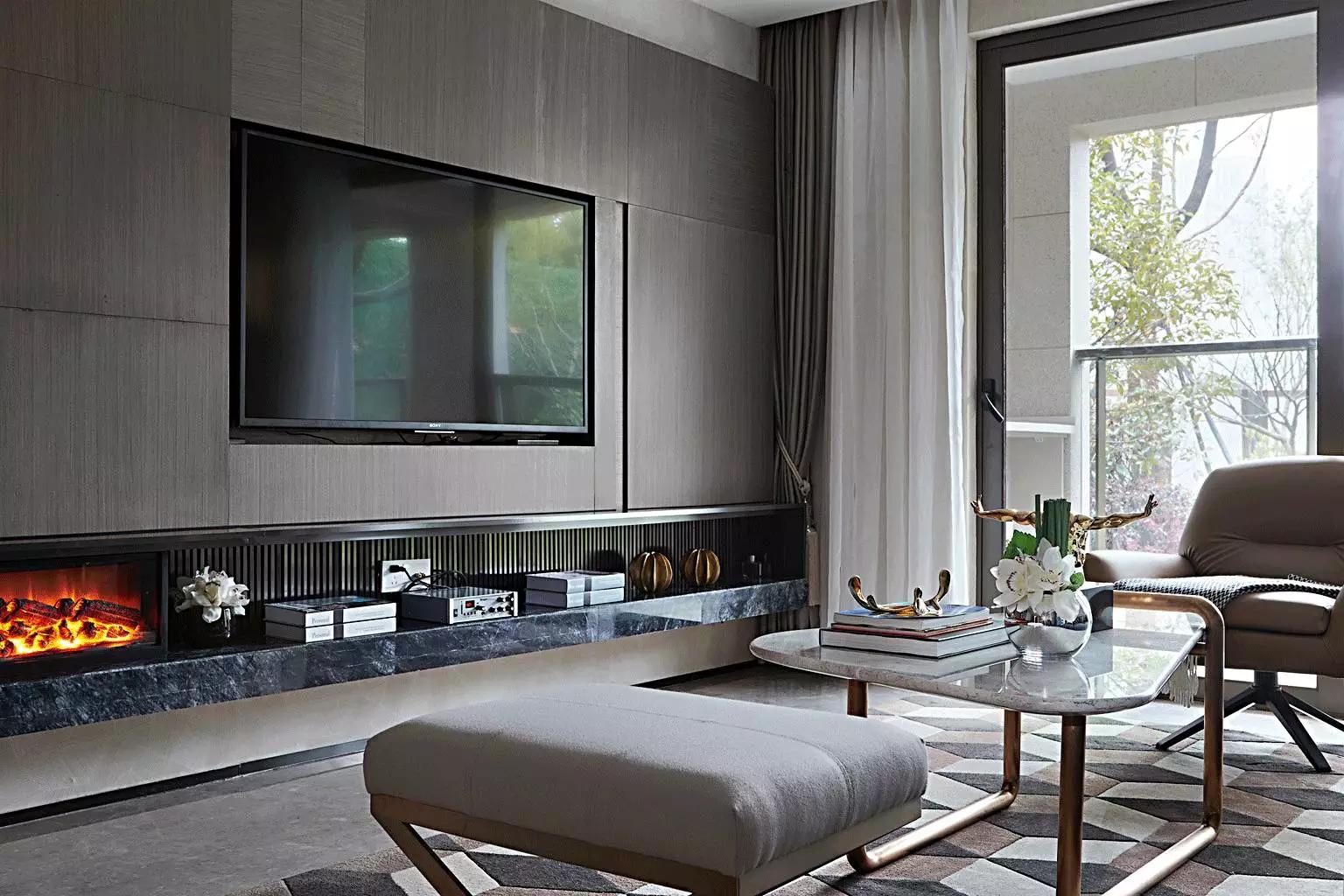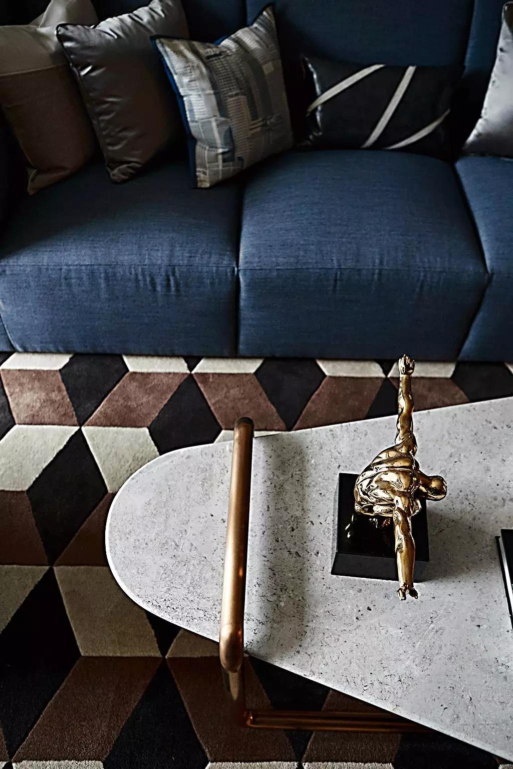 在高級灰的主調下,任憑灰藍、灰咖、米灰自由穿梭。金屬與大理石外表下的冷酷質感、紡織布藝的溫柔親膚與皮革制品帶有的手工溫度,交纏錯綜,剛柔相濟。定制壁爐與優(yōu)雅的Minotti沙發(fā),隱約顯露出居所主人優(yōu)越的品味。