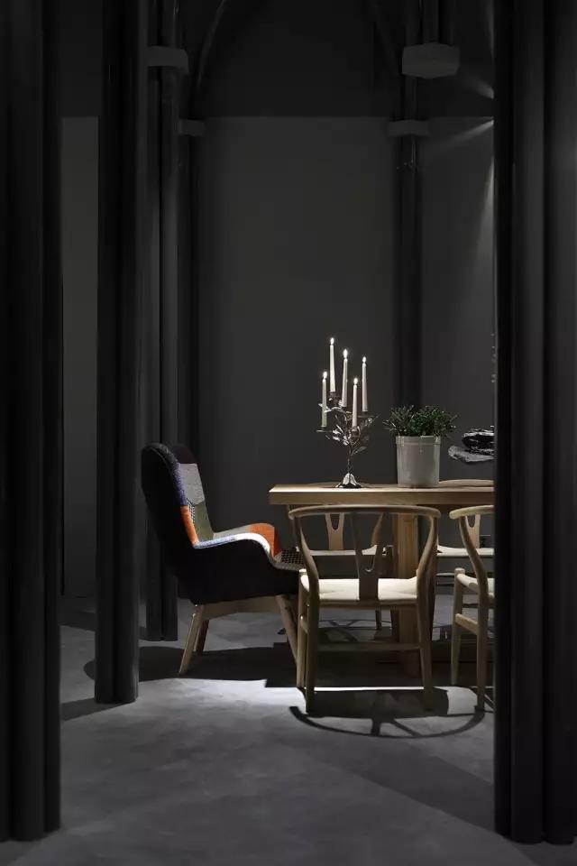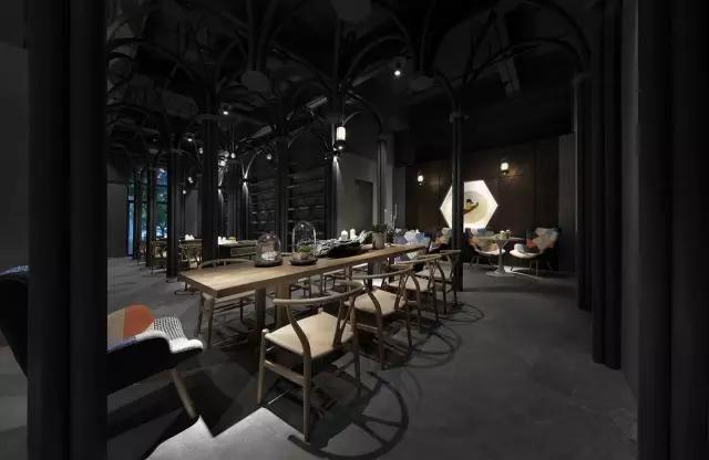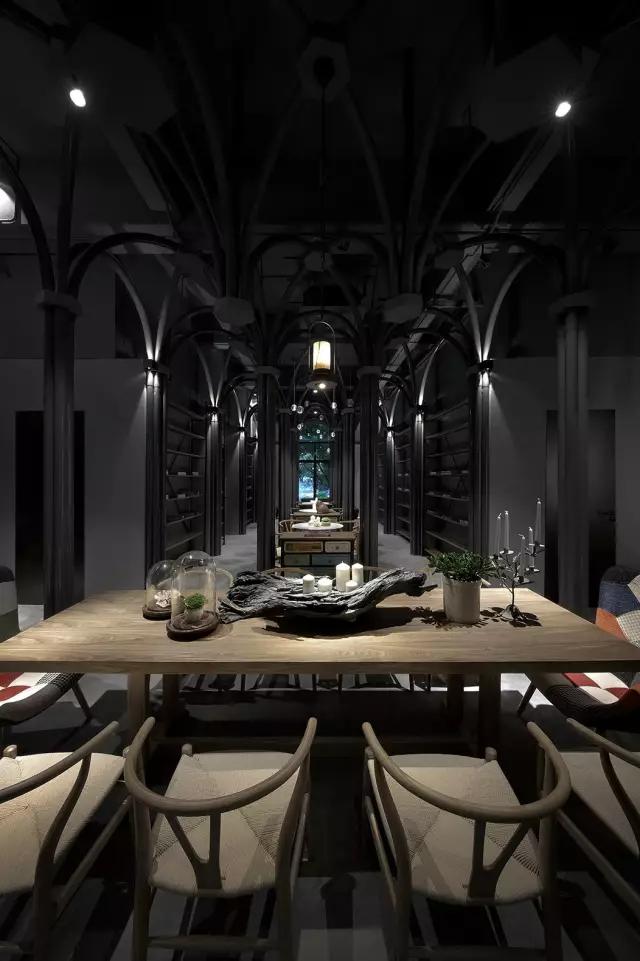 原建筑空間剛剛結(jié)束了破敗的工業(yè)廠房的狀態(tài),業(yè)主接手時(shí)還是一片狼藉。項(xiàng)目的運(yùn)營團(tuán)隊(duì)希望打造集餐飲區(qū)、咖啡區(qū)、音樂活動(dòng)區(qū)及一個(gè)塔羅牌活動(dòng)區(qū)為一體的復(fù)合空間。設(shè)計(jì)團(tuán)隊(duì)從項(xiàng)目的主題概念中所散發(fā)的神秘色彩入手,希望在偏精神層面的建筑中汲取靈感,翻閱并走訪了大量的哥特式建筑,從挺拔向上的建筑空間結(jié)構(gòu)中體會(huì)與神對(duì)話的力量感,然后將其移植到這個(gè)項(xiàng)目中,以當(dāng)代的構(gòu)成形式,向傳統(tǒng)建筑致敬。