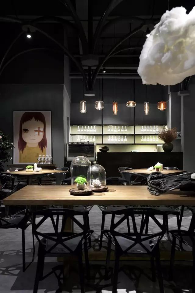 考慮到經(jīng)濟(jì)性、便捷的施工工藝與周期,清水混泥土成為了主要的材質(zhì)。由哥特式建筑引發(fā)的圓管結(jié)構(gòu)設(shè)計(jì),在空間中重組、穿插、演繹了一場(chǎng)哥特式感覺的舞臺(tái)劇,其高潮莫過于咖啡區(qū)的一朵白色漂浮的云。設(shè)計(jì)最大限度的融入了環(huán)保概念,不僅所有的材料都是可以回收利用的,而且定制安裝的方法既減少了現(xiàn)場(chǎng)的污染,也節(jié)省了施工周期。設(shè)計(jì)團(tuán)隊(duì)選擇了很多具有趣味性的當(dāng)代藝術(shù)作品來為空間注入時(shí)尚而放松的氣質(zhì),輔以層次豐富的燈光效果,將空間打造成了一個(gè)優(yōu)雅而又風(fēng)趣的雅皮士的感覺。